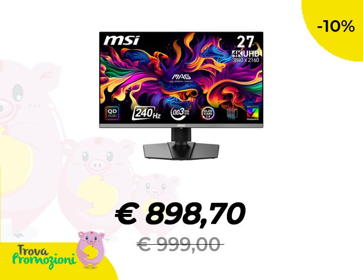 ๐๐ผ MSI MAG 272UP QD-OLED X24 27" Gaming Monitor - 4K UHD 3840x2160, Pannello Quantum Dot OLED, 240Hz, 0,03ms - DisplayHDR TRUE Black 400, AMD FreeSync Premium Pro, USB-C (15W PD)