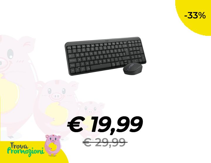 👉🏼 Logitech MK250 Kit mouse e tastiera wireless Bluetooth: connettività facile e veloce, tastiera wireless compatta, mouse ambidestro, struttura resistente - Windows/macOS