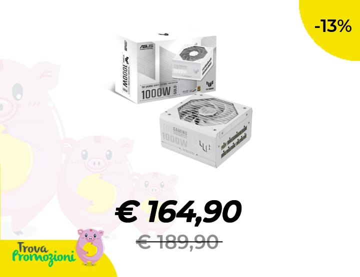 ๐๐ผ ASUS TUF GAMING 1000W White Edition, Alimentatore Modulare, Certificato 80+ Gold, ATX 3.1 e PCIe 5.1, Doppio Cuscinetto a Sfera, Ventole Axial-tech, Rivestimento PCB, Bianco, TUF-GAMING-1000G-WHITE
