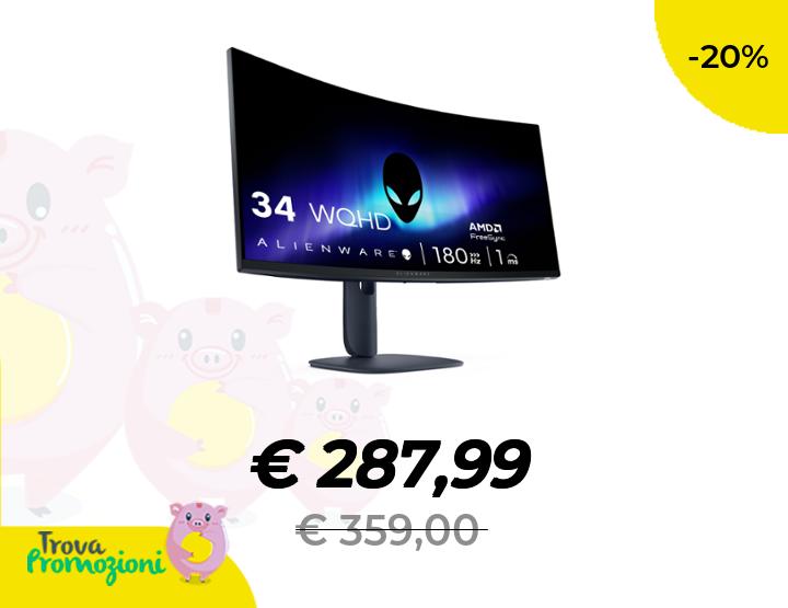 ๐๐ผ Alienware 34 Monitor Gaming - AW3425DWM, WQHD (3440x1440), 21:9 1500R Curvo, 180Hz, VA, 1ms, AMD FreeSync Premium, VESA AdaptiveSync, 95% DCI-P3, HDR400, DisplayPort, 2 HDMI, 3 USB, 3 Anni di Garanzia
