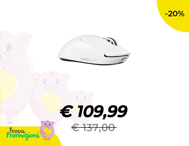 ๐๐ผ Logitech G PRO X SUPERLIGHT 2 LIGHTSPEED mouse gaming wireless, Versione Est Europa, aggiornamento 8K, leggero, 60g, HERO 2, 888 IPS, 44K DPI, 5 pulsanti programmabili, USB-C, PC e Mac - Bianco
