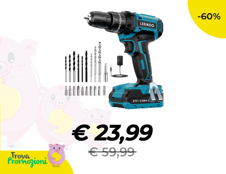 ๐๐ผ Trapano Avvitatore Batteria 21V, LEEIKOO Avvitatore a Batteria con Batterie 2.0Ah, 42N.m Avvitatore Elettrico, 25+3 Coppie, 2 Velocitร , LED Luce, 23PCS Accessori per Fai da te