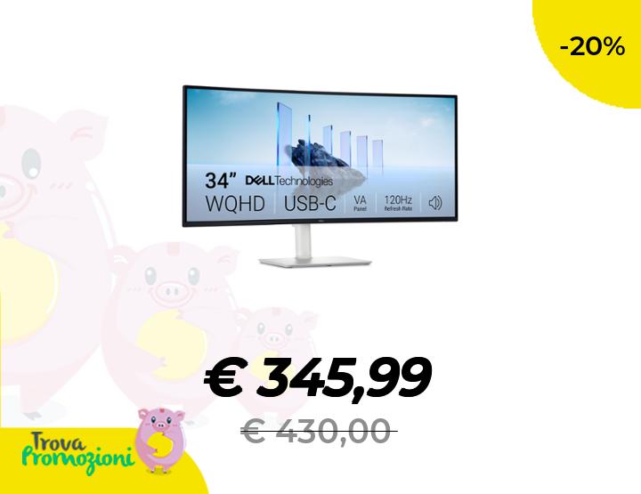๐๐ผ Dell 34 Plus USB-C Monitor - S3425DW, WQHD (3440x1440), 21:9 Curvo, 120Hz, VA, 1ms, AMD FreeSync Premium, HDR10, Regolabile in Altezza, Altoparlanti integrati, 2 USB-C, 2 HDMI, 3 Anni di Garanzia