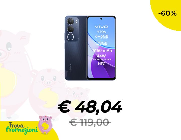 👉🏼 vivo Y19s, Smartphone 6+6GB RAM, 128GB ROM, Cameraphone 50MP, AI modalità notte, 6.68”, 44W Ricarica veloce, Batteria da 5150 mAh, NFC, Dual SIM, Luce Dinamica, IP64