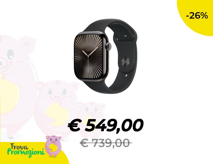 ๐๐ผ Apple Watch Series 10 GPS + Cellular 46 mm Smartwatch con cassa in titanio color Ardesia e cinturino Sport Loop Nero - S/M. Fitness tracker, app ECG, display Retina always-on, Carbon Neutral