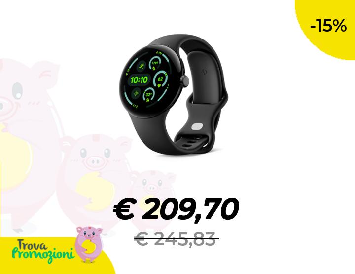 ๐๐ผ Google Pixel Watch 3 (45 mm) - Cassa nero opaco - Cinturino nero ossidiana - Wi-Fi