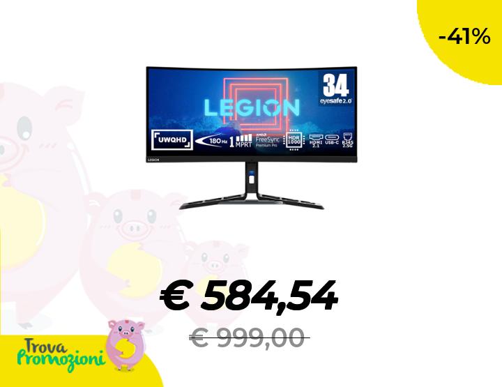 ๐๐ผ Lenovo Legion Y34wz-30 Monitor Gaming Curvo 34" WQHD (3440x1440), VA, 1ms, 165Hz (Overclock 180Hz), Altoparlanti, Regolabile, AMD FreeSync Premium Pro, HDMI 2.1 + DP + USB-C