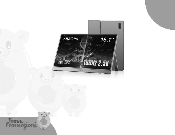 ๐๐ผ ARZOPA Monitor Portatile Z3FC 16.1" 2K QHD 180Hz | IPS HDR10 400 Nit | Ultra Sottile 780g in Alluminio | Compatibile con PC, Mac, PS5, Xbox, Switch | Grigio Spaziale-Z3FC