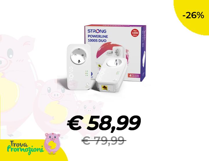 ๐๐ผ STRONG AV1000Mbps Kit Powerline con Pass-Through, Presa Integrata, Ripetitore Powerline Ethernet HomePlug AV2, Porte Gigabit, Plug & Play, Compatibile con Router, Modalitร Risparmio Energe (PL1000S)