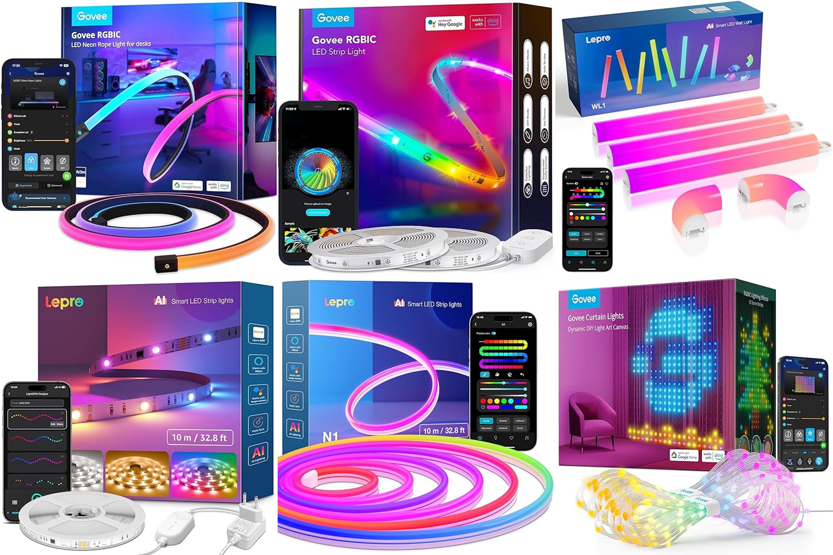 ๐๐ผLepro WL1 AI Smart Luci Natale Interno,SYNC Music e RGBIC DIY per LED Gaming Room,Retroilluminazione TV,LED Light Bars Funziona con Alexa/Google Assistant,Progettista Illuminazione AI Personalizzato