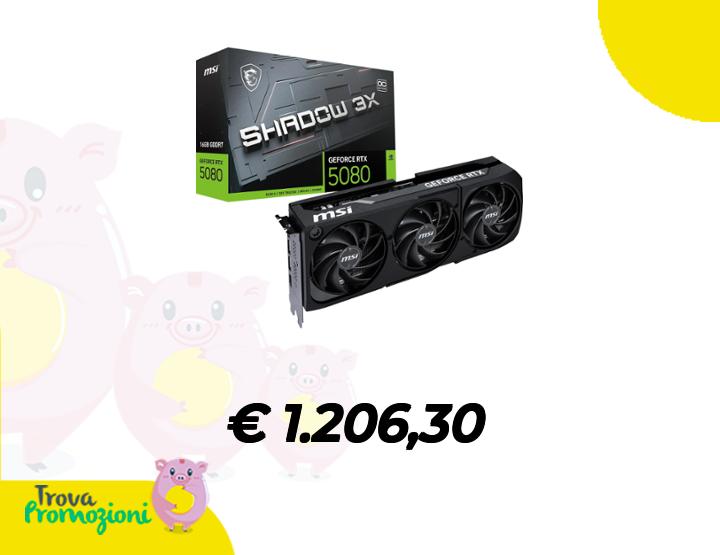 ๐๐ผ MSI NVIDIA GeForce RTX 5080 16G Shadow 3X OC Carte Graphique -16 Go GDDR7 (30 Gb/s/256 Bits), PCIe 5.0, Triple Ventilateur (3X Ventilateurs TORX 5.0) - HDMI 2.1b x 1, DisplayPort 2.1b, SFF Ready