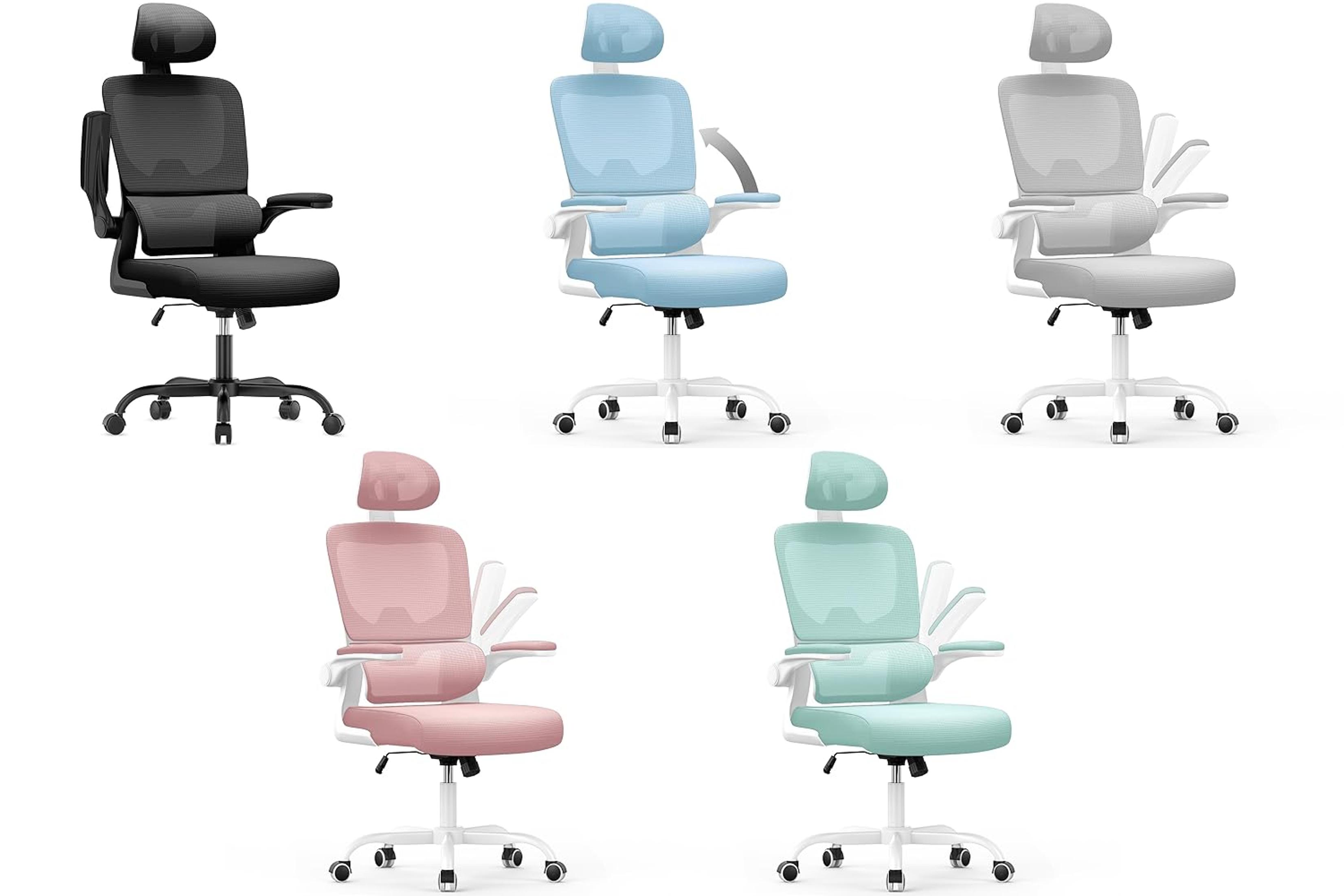 ๐๐ผ Sedia da ufficio ergonomica Sedia da scrivania con braccioli pieghevoli Sedia da gioco girevole con schienale traspirante regolabile in altezza
