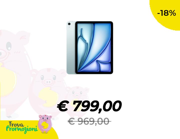 ๐๐ผ Apple iPad Air 11'' con chip M3: Apple Intelligence, 256 GB, fotocamera frontale e posteriore da 12MP, Wi-Fi 6E + reti cellulari 5G, Touch ID, un giorno intero di batteria โ Azzurro