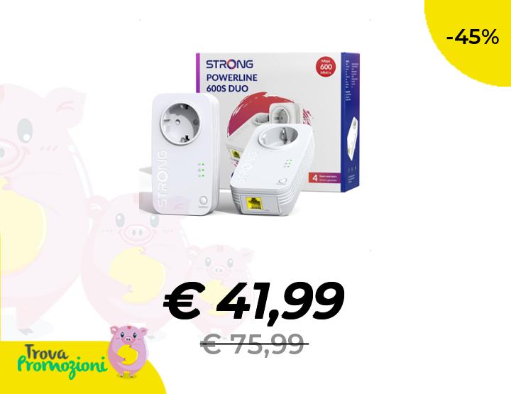 ๐๐ผ STRONG AV600Mbps Kit Powerline con Pass-Through, Presa Integrata, Ripetitore Powerline Ethernet HomePlug AV2, Plug & Play, Compatibile con Router, Modalitร Risparmio Energetico, Porta LAN 100Mbps