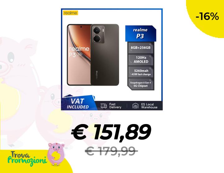 ๐๐ผ Versione globale realme P3 5G Smartphone Snapdragon 6 Gen 4 120Hz AMOLED Esports Display 50MP AI Fotocamera 45W Carica 5260mAh Batteria
