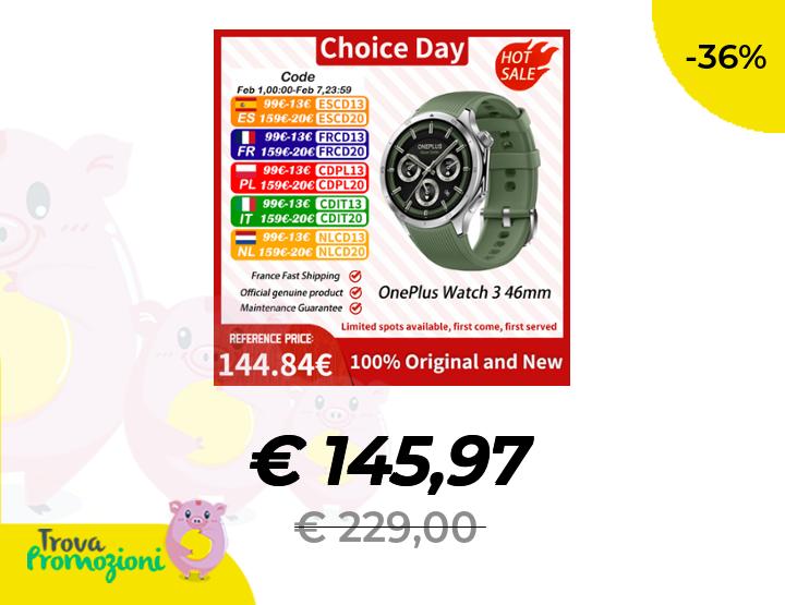 ๐๐ผ Versione globale OnePlus Watch 3 Smart Watch Display AMOLED da 1,5 pollici Memoria da 32 GB Snapdragon W5 Wear OS di Google IP68