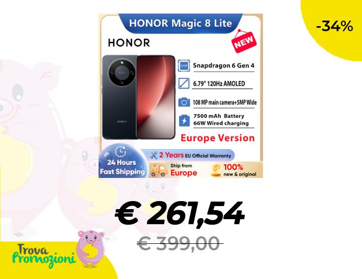 ๐๐ผ HONOR Magic 8 Lite EU Version 5G Smartphone Snapdragon 6 Gen4 2.5m Drop-Resistant IP69K Dust-Resistant 7500mAh 108MP OIS AI eSIM