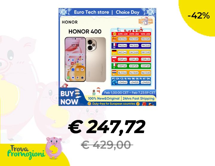 Bomba in versione migliore della nostra anche per Honor 400 da 12/512GB (IMPORTANTE SELEZIONA LA VERSIONE CORRETTA)