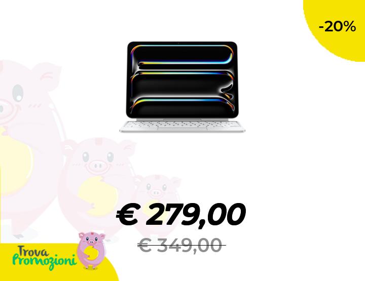 ๐๐ผ Apple Magic Keyboard per iPad Pro 11'' (M4), comodissima per scrivere e con trackpad integrato, tasti funzione, Italiano โ Bianco