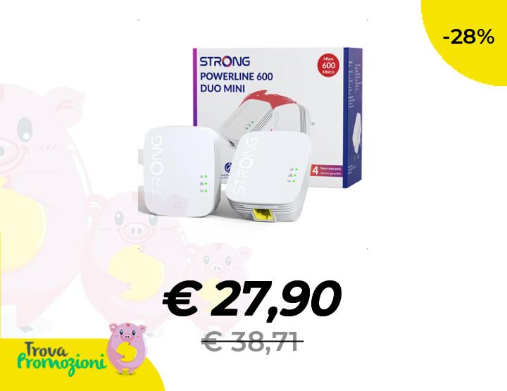 ๐๐ผ STRONG AV600 Kit Powerline, Ripetitore Powerline Ethernet HomePlug AV2, Plug & Play, Sicurezza One-Touch, Modalitร Risparmio Energetico, Portata fino a 300 Metri, Porte LAN 100Mbps (PL600M)