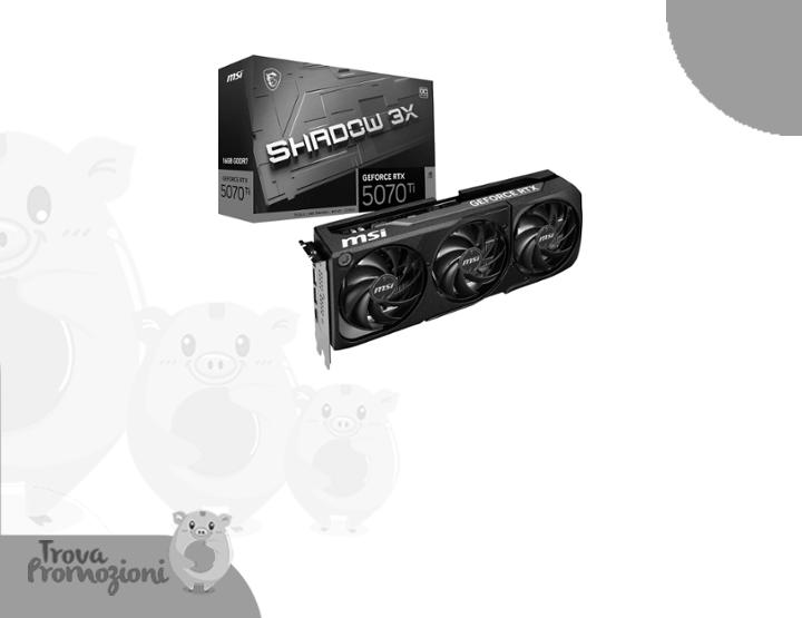 ๐๐ผ MSI GeForce RTX 5070 Ti 16G SHADOW 3X OC โ 16 GB GDDR7 (28 Gbps / 256-bit) โ PCIe 5.0 โ Design termico a tripla ventola (3 x TORX FAN 5.0) โ HDMI 2.1b / 3 x DisplayPort 2.1b