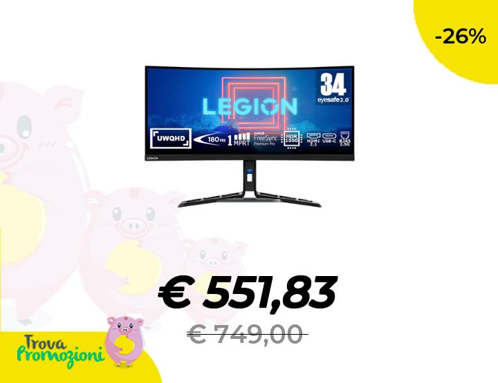 ๐Ÿ‘‰๐Ÿผ Lenovo Legion Y34wz-30 Monitor Gaming Curvo 34" WQHD (3440x1440), VA, 1ms, 165Hz (Overclock 180Hz), Altoparlanti, Regolabile, AMD FreeSync Premium Pro, HDMI 2.1 + DP + USB-C