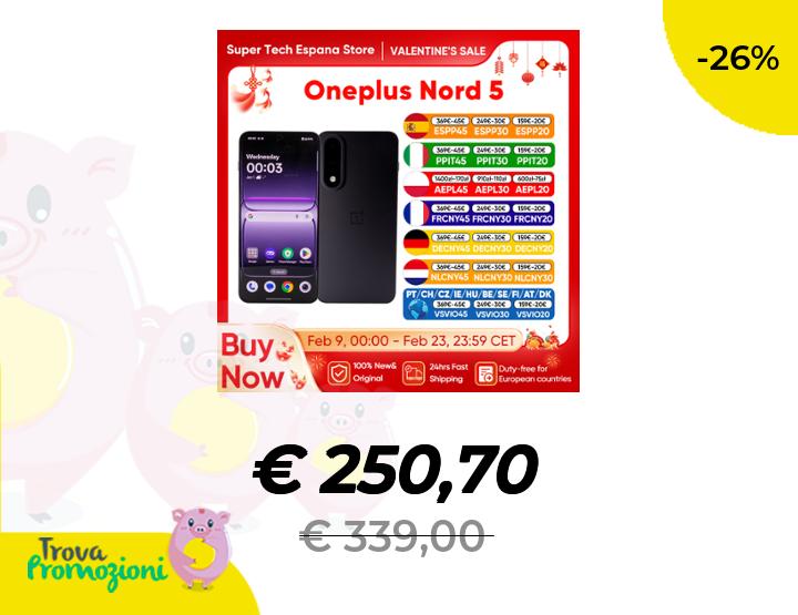 ๐Ÿ‘‰๐Ÿผ Oneplus Nord 5 5g Smartphone Snapdragon 8S Gen 3 Display Amoled da 6,83" 144 Hz 5200Mah 80W Supervooc Ricarica 50Mp Doppia fotocamera