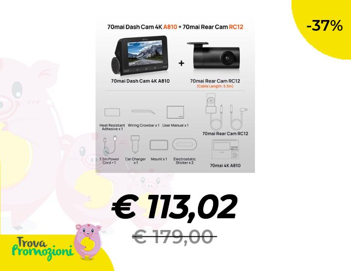 ๐Ÿ‘‰๐Ÿผ SELEZIONA KIT DA 2 -70mai Dash Cam 4K A810 Ultra HD GPS ADAS 150FOV HDR Rilevazione movimento supportata a doppio canale 70mai A810 DVR per auto Compatibile con LTE 4G