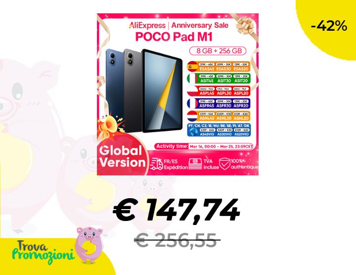 ๐Ÿ‘‰๐Ÿผ Tablet POCO Pad M1 Versione Globale con Snapdragon ยฎ Display Cristallino 2.5K da 12.1 Pollici 120Hz 7s Gen 4, Batteria 12000mAh con Ricarica Rapida 33W