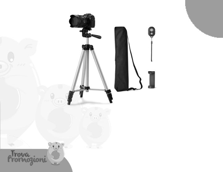๐๐ผ Amazon Basics - Treppiede per Telefono e Fotocamera DSLR 127cm, Leggero, con Borsa, Telecomando Wireless e Supporto per Telefono, Altezza Regolabile, Argento