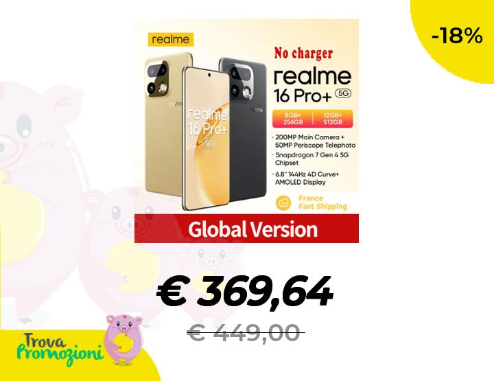 ๐๐ผ realme 16 Pro Plus Smartphone con Display AMOLED Curvo da 6.8" a 144Hz, Chipset Snapdragon 7 Gen4, Fotocamera da 200MP, Batteria da 7000mAh, Ricarica a 80W