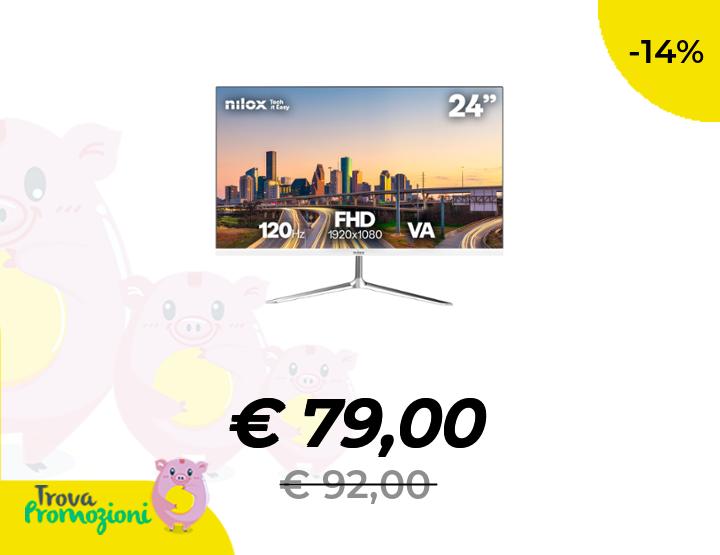 ๐๐ผ Nilox NXM24FHD1201W Monitor Gaming 24'' VA, Frequenza 120 Hz, Connessioni HDMI/VGA, Supporto VESA 75ร75 mm