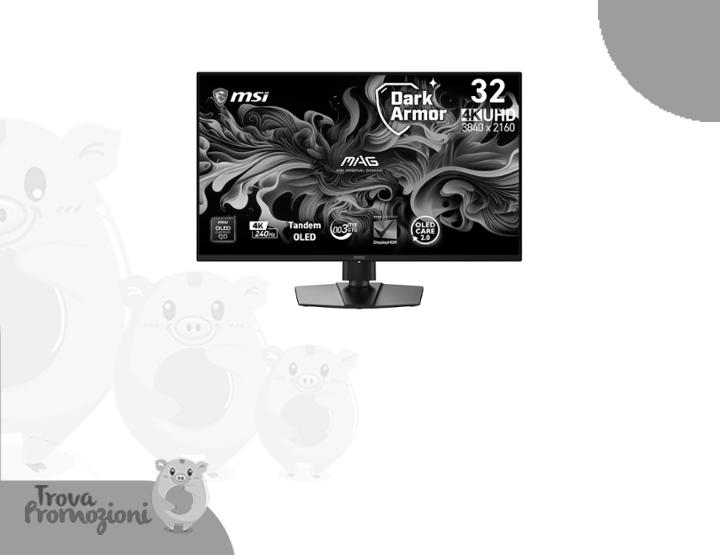 ๐๐ผ msi MAG 321UP QD-OLED X24 Monitor Gaming 32โ 4K UHD (3840ร2160), Tandem QD-OLED, 240 Hz, 0,03 ms, DarkArmor Film, Uniform Luminance, Super Low Motion Blur, G-SYNC Compatible, AMD FreeSync Premium Pro