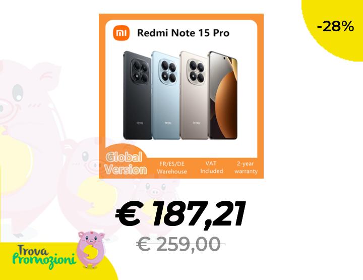 ๐๐ผ Xiaomi Redmi Note 15 Pro Versione Europea MTK Helio G200-Ultra Display AMOLED 6.77" 120Hz IP65 6500mAh Ricarica Turbo 45W