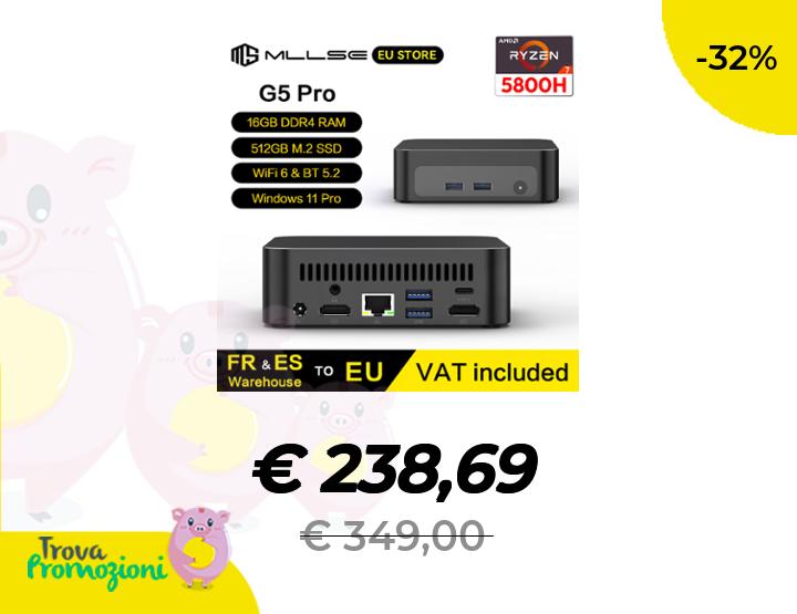 ๐๐ผ Mini PC MLLSE G5 Pro AMD Ryzen 7 5800H, 16 GB di RAM, SSD da 512 GB, Wi-Fi 6, Bluetooth, Windows 11 Mini computer desktop