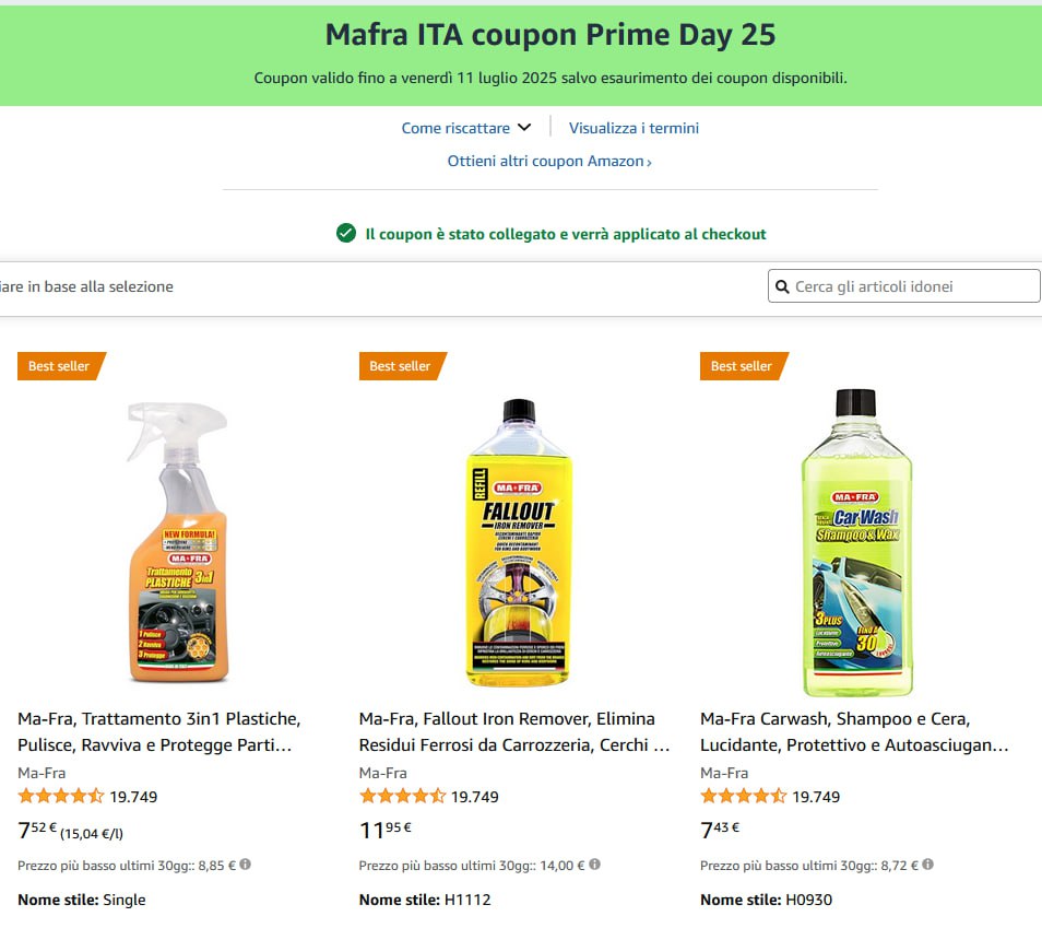 ๐๐ผ Prezzoni Ma-Fra per la tua auto in combo Prime Day + coupon!