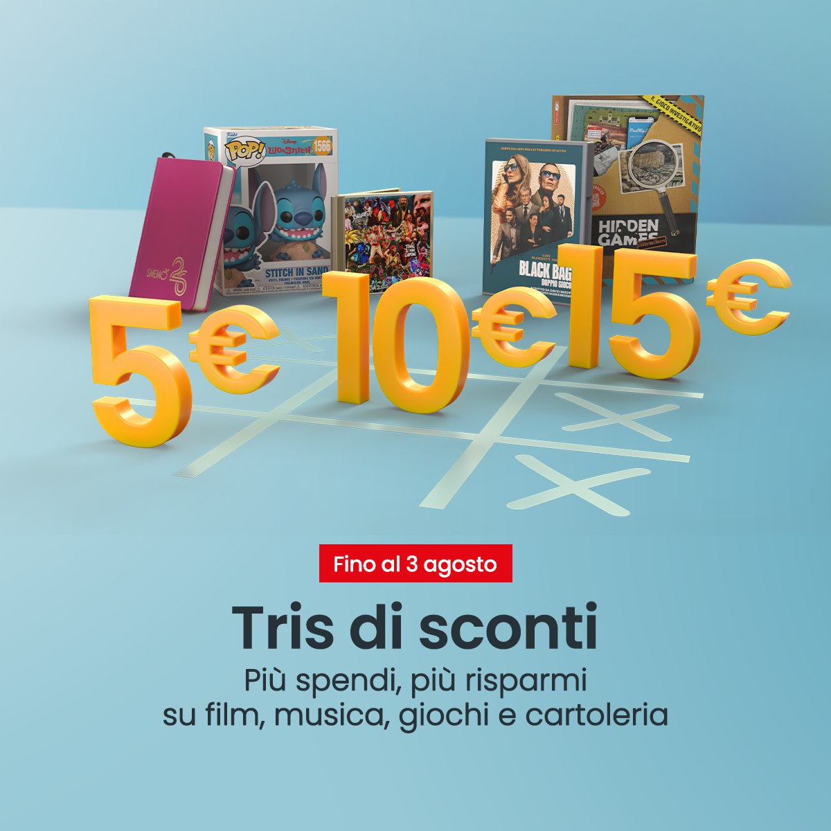 โน๏ธ Ricevi subito fino a 15 euro di sconto per i tuoi acquisti di libri outlet, film, musica, cartoleria, giochi e idee regalo! Approfittane subito, solo fino al 3 agosto