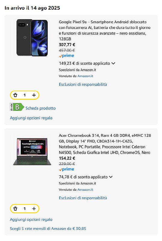 ๐ก L'ordine conterrร il Pixel 9a a 312โฌ e il Chromebook a 154โฌ!
