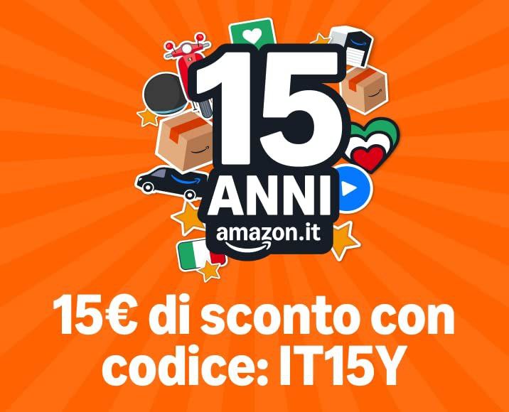๐๐ผ Buon Compleanno Amazon! 15โฌ di sconto su ordine di 75โฌ con il codice IT15Y