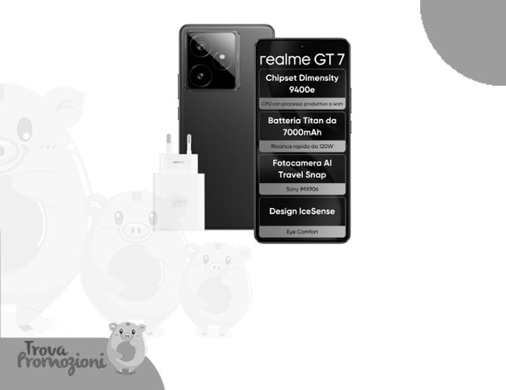 ๐๐ผ realme GT 7 Smartphone, 5G Dual SIM, 12 GB di RAM, 256 GB di ROM, display AMOLED da 6,8", chipset di punta Dimensity 9400e, batteria Titan da 7000 mAh, fotocamera da 50 MP, Nero (Adattatore incluso)