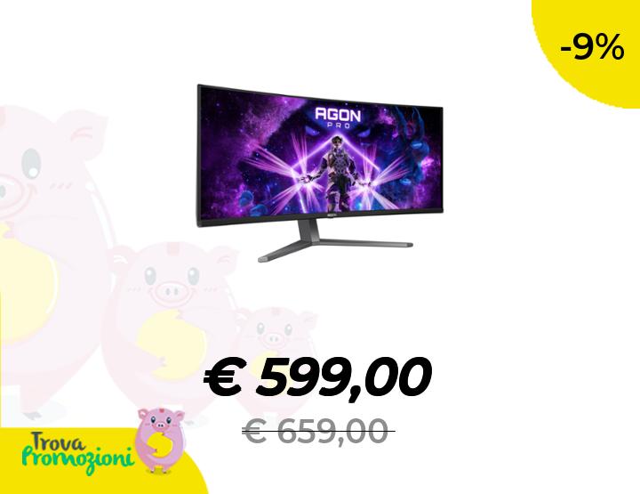 ๐๐ผ AOC Agon PRO AG346UCD Monitor gaming curvo OLED WQHD da 34 pollici, 175 Hz, 0.03 ms, FreeSync Premium Pro, comp. G-Sync, HDR400 3440x1440, 2X HDMI, DisplayPort, Hub USB nero