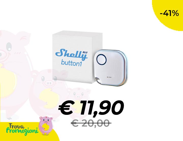 ๐๐ผ Shelly Blu Button 1 Bianco, pulsante smart, Bluetooth, Attivazione di azioni e Scene, Chiudi/Apri o spegnere/Accendere dispositivi Diversi, tre modalitร di clic, durata batteria 2 anni