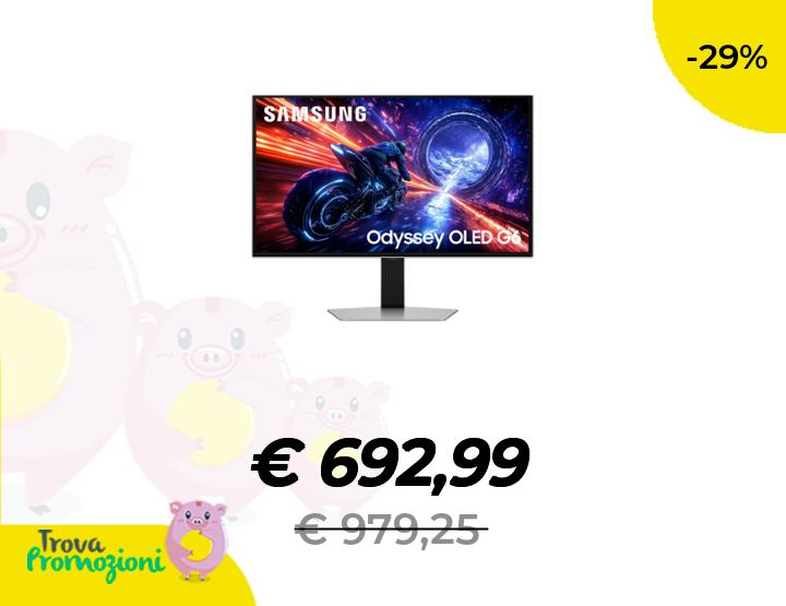 ๐๐ผ Samsung Monitor Gaming Odyssey OLED G6 (S27FG602SU), Flat, 27'', 2560x1440 (QHD), 16:9, QD-OLED Glare Free, 500Hz, 0,03ms (GtG), Compatibilitร G-Sync, HDMI, DP, Ingresso Audio, HAS, Pivot