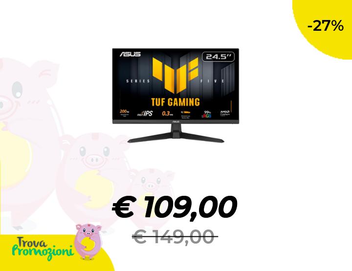๐๐ผ ASUS TUF Gaming VG259Q5A, Monitor Gaming 24,5" Full HD Fast IPS (1920 x 1080), 0,3ms Response Time, 200 Hz, Altoparlante Integrato, ELMB, HDMI, DisplayPort e Jack Audio, Display Widget Center, Nero