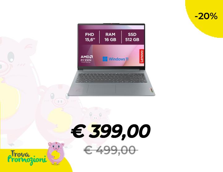 ๐๐ผ Lenovo IdeaPad Slim 3 Notebook 15,6โ FHD (1920x1080), AMD Ryzen 5 7520U, RAM 16GB, 512GB SSD, Grafica Integrata, WiFi 6, Windows 11 Home - Arctic Grey