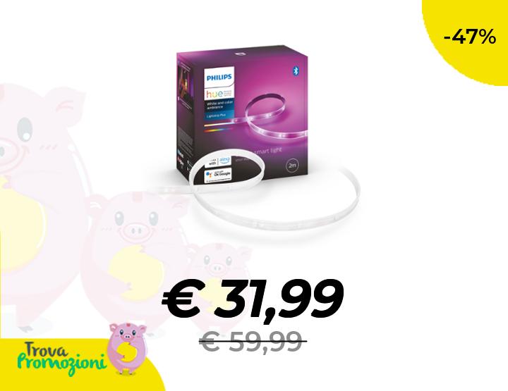 ๐๐ผ Philips Hue White & Color Ambiance Strisce LED Plus V4 base da 2 m, Strisce Luminose a LED dimmerabile, RGB, controllabile tramite app, Luci Smart compatibili con Amazon Alexa (Echo, Echo Dot)