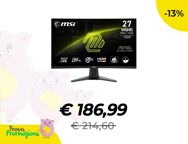 ๐๐ผ MSI MAG 27CQ6F Monitor Gaming da 27" WQHD Curvo - Pannello VA Rapid 1500R (2560 x 1440), 180 Hz / 0.5ms (GtG, Min.), Adaptive-Sync - DP 1.4a, HDMI 2.0b CEC