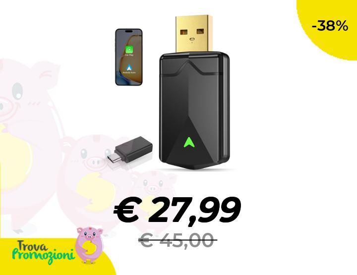 ๐๐ผ Adattatore CarPlay Wireless โ Adattatore Android Auto Wireless, Wi-Fi 5,8GHz Plug & Play, Mini e Stabile, iOS 10+/Android 10+, Connessione Automatica Rapida per Auto dal 2016 in poi (1Pezzi)