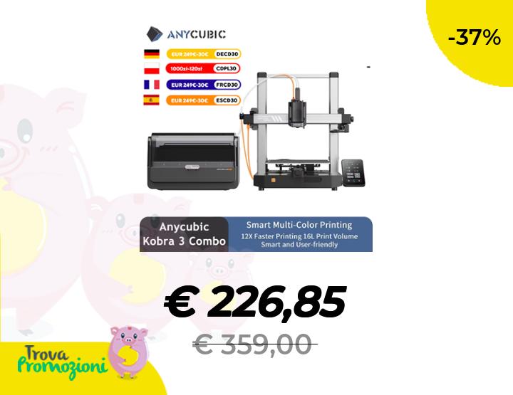 ๐๐ผ Stampante 3D FDM multicolore ANYCUBIC Kobra 3 Combo Velocitร massima di stampa 600 mm/s Dimensioni di costruzione 250x250x260 mm