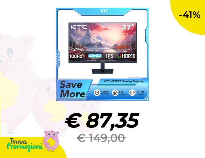 ๐๐ผ Monitor da gioco KTC H27T27, schermo IPS da 27" 2560x1440, velocitร di aggiornamento 100 Hz, tempo di risposta HDR10 di 1 ms, luce blu bassa e senza sfarfallio
